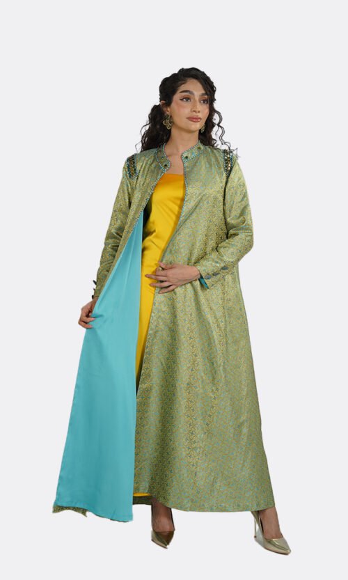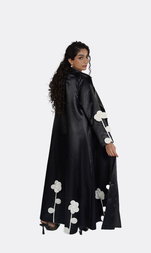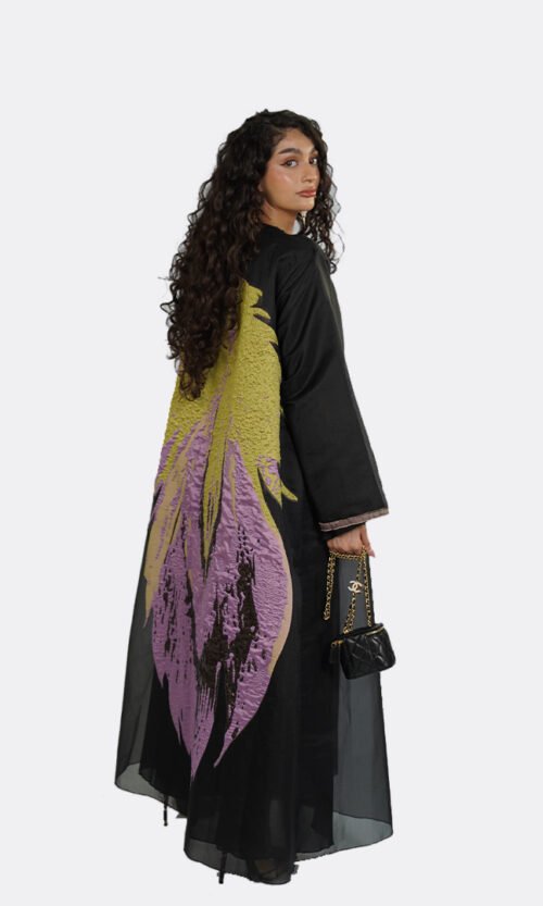 For custom and printed designs, subtle variations between print batches are a natural part of the production process. Print placement may also vary from one piece to another, as each garment is individually cut. This means that design elements may appear in slightly different positions, making every abaya uniquely composed while remaining faithful to the original design.